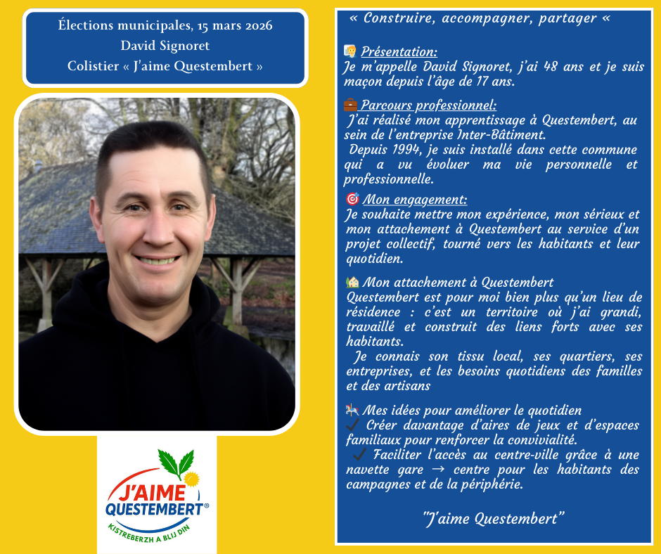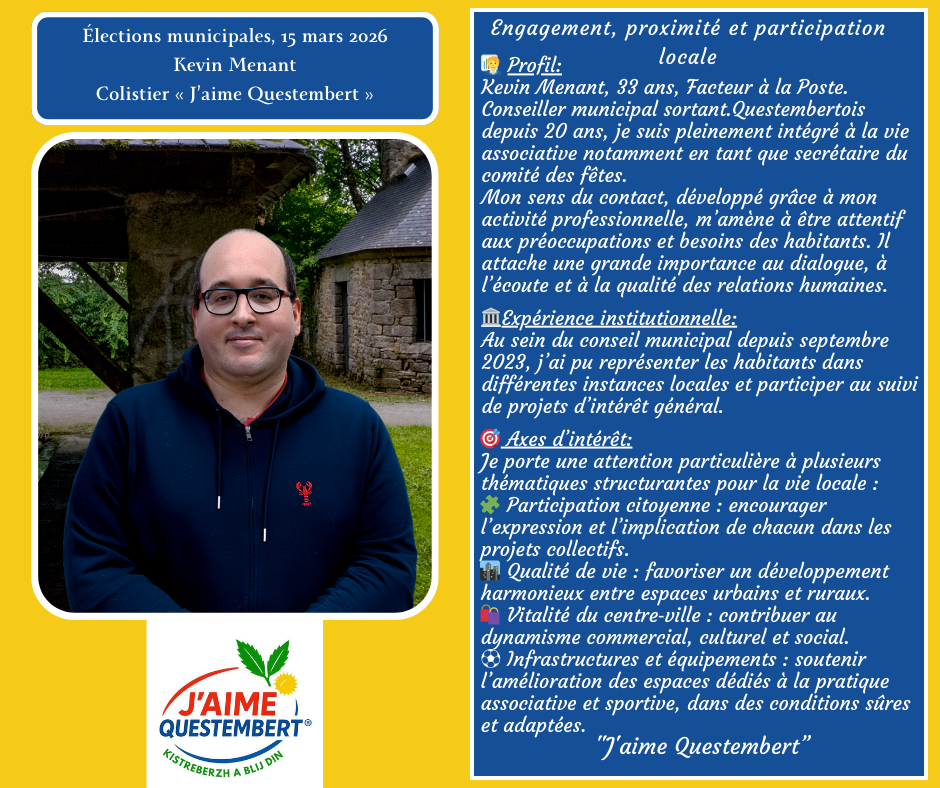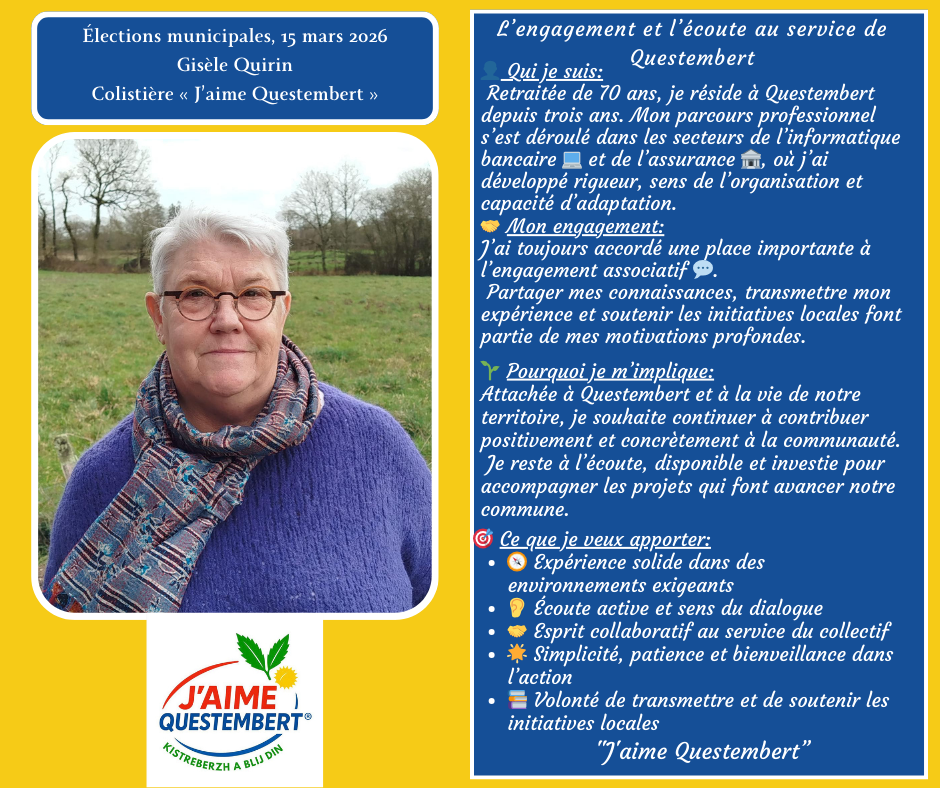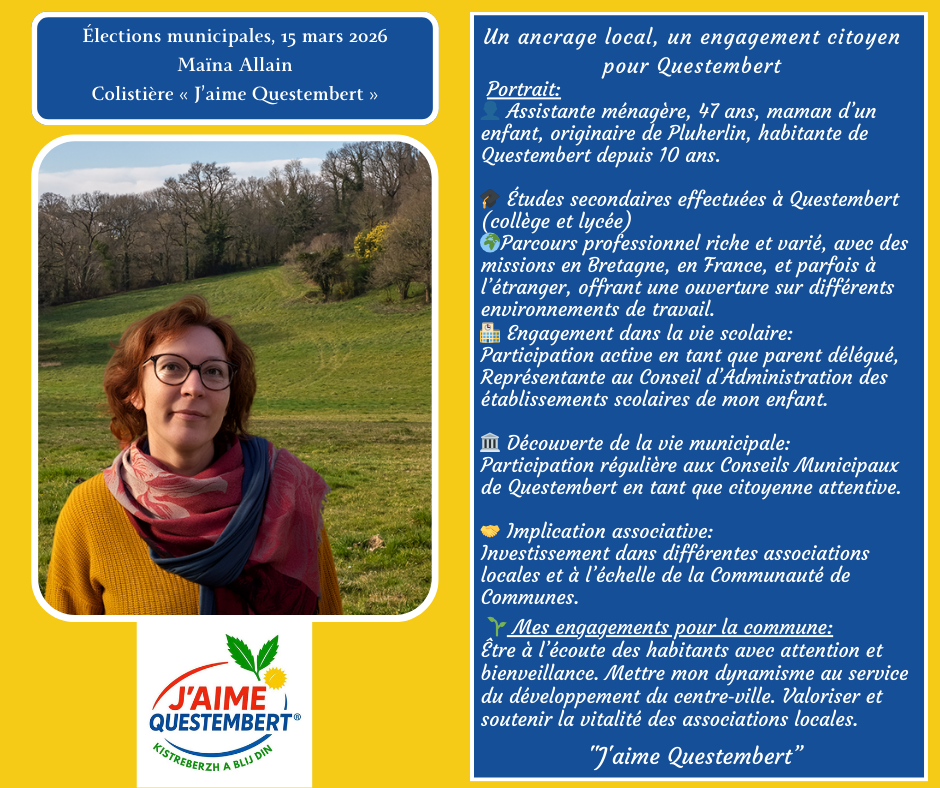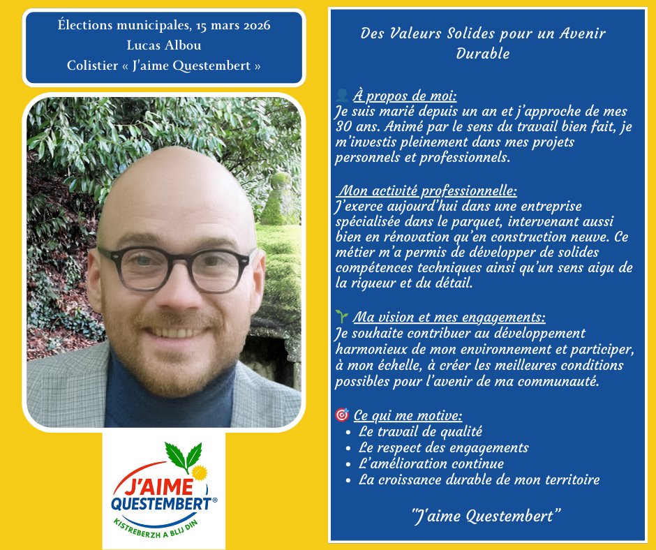 "J'aime Questembert " vous présente sa liste pour les municipales 2026